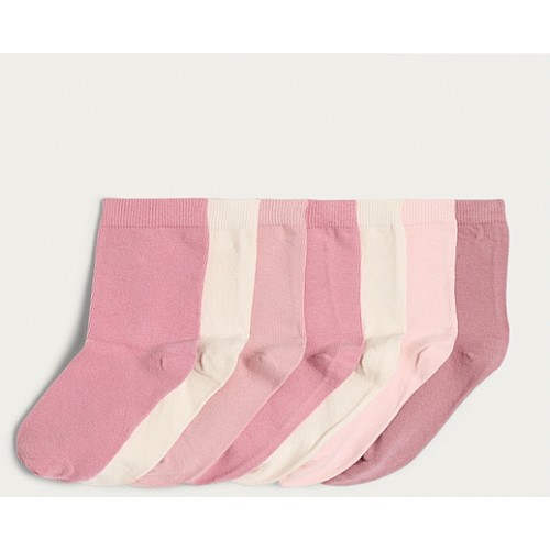 Girls 7-Pack Cotton Rich Ankle Socks in Pink
