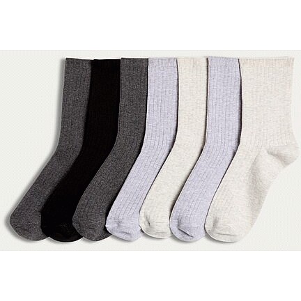 7-Pack Cotton Rich Ribbed Ankle Socks in Grey