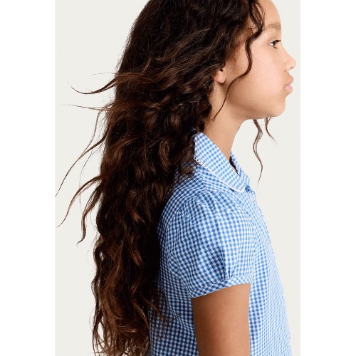 F&F School Girls 2-Pack Cotton Rich Gingham Short Sleeved Dresses in Blue