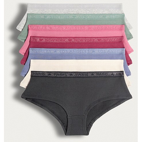 Girls 7-Pack Cotton Rich Ribbed Glitter City Band Short Knickers in Multi