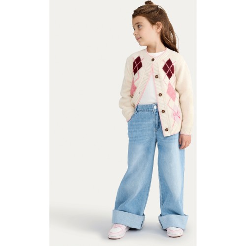 F&F Girls Argyle Knitted Cardigan in Multi Pink