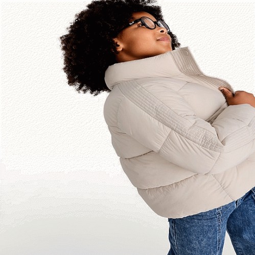 F&F Girls High Neck Double Layer Padded Jacket in Cream