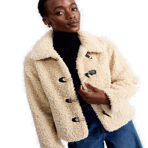 The F&F Edit Borg Textured Toggle Fastening Cropped Jacket in Neutral