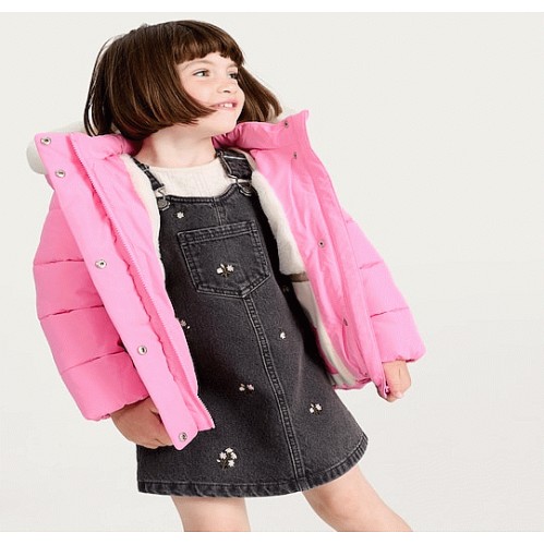 F&F Girls Fluffy Hood Padded Shower Resistant Jacket in Pink