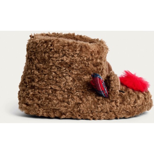 Girls Borg Textured Reindeer Slippers in Neutral