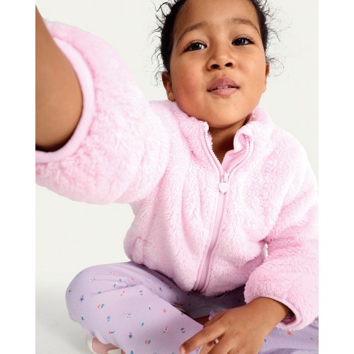 F&F Girls Borg Textured Zip Up Jacket in Pink