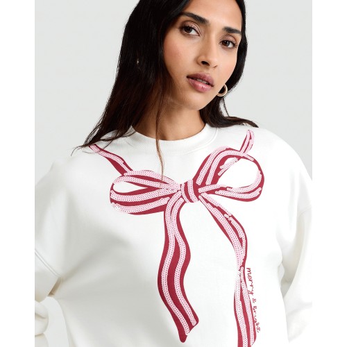 Merry & Bright Bow Sweatshirt in Cream