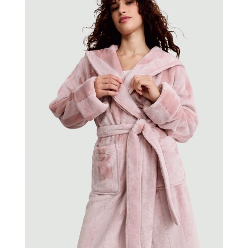 Hooded Dressing Gown in Pink