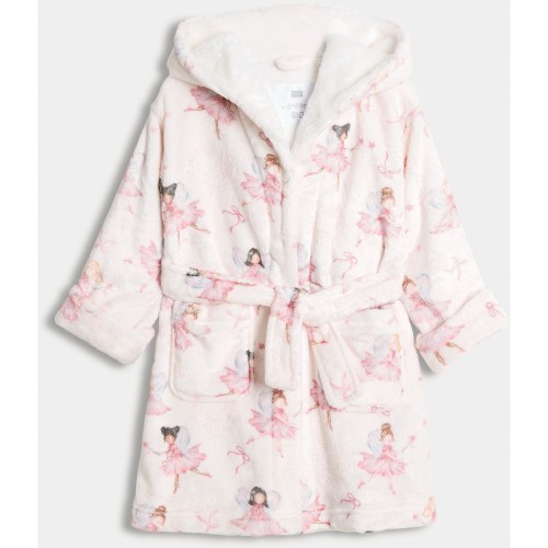 Girls Fleece Fairy Print Dressing Gown in Pink