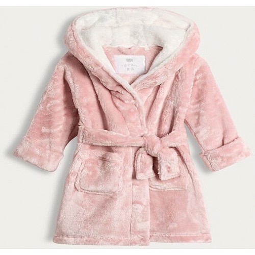 Girls Brushed Fleece Hooded Dressing Gown in Pink