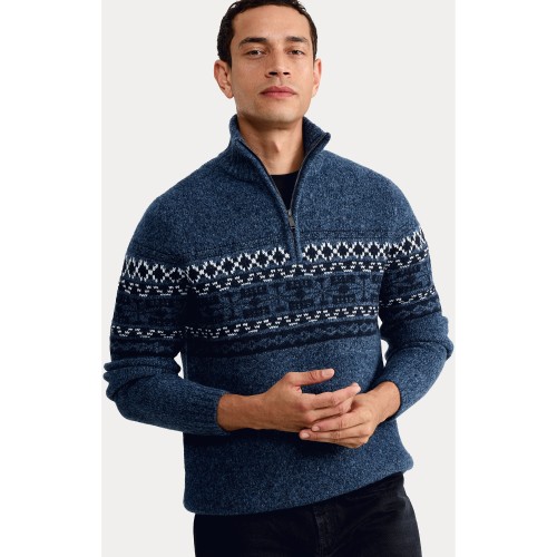 Fair Isle Half-Zip Jumper with Wool in Grey