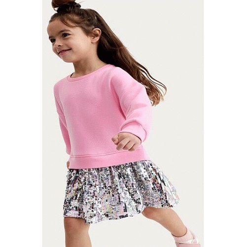 F&F Girls Sequin Skirt Sweater Dress in Pink