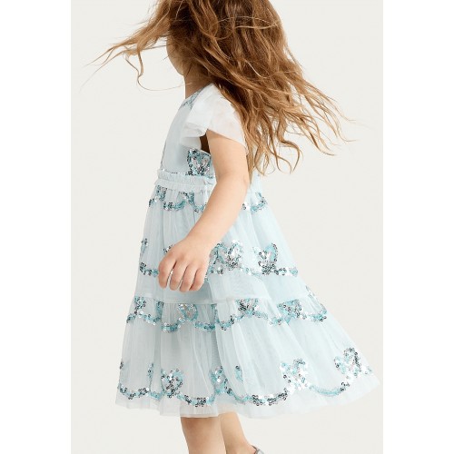 F&F Girls Sequin Embellished Tiered Dress in Blue
