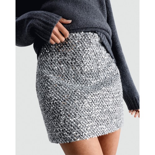 Boucle Textured Sequin Embellished Mini Skirt in Black