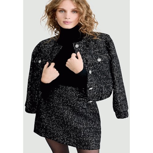 Boucle Sequin Embellished Co-ord Mini Skirt in Black