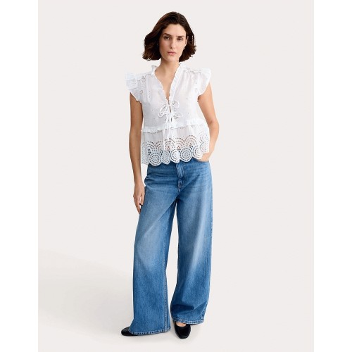 Pure Cotton Broderie Sleeveless Blouse in White