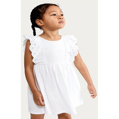 F&F Girls Pure Cotton Broderie Frill Dress in Cream