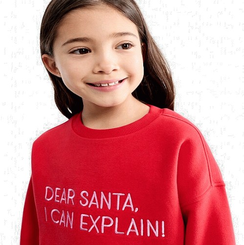 F&F Girls Cotton Rich Dear Santa Slogan Sweatshirt in Red