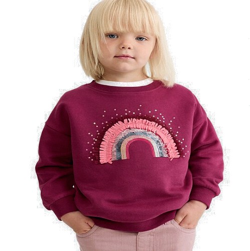 F&F Girls Cotton Rich Rainbow Embellished Sweatshirt in Burgundy