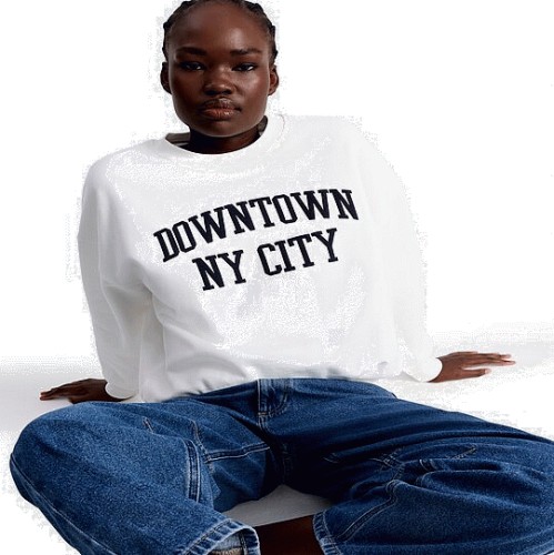 Cotton Rich Downtown NY City Slogan Sweatshirt in Cream