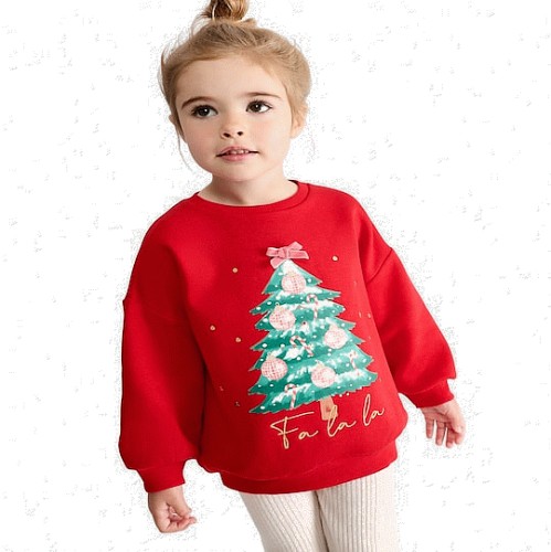 F&F Girls Cotton Rich Christmas Tree Sweatshirt in Red