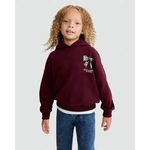 F&F Girls Cotton Rich Adventures in Style Slogan Hoodie in Burgundy