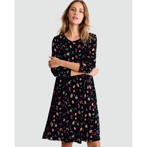 Christmas Print Long Sleeved Mini Dress in Multi Black