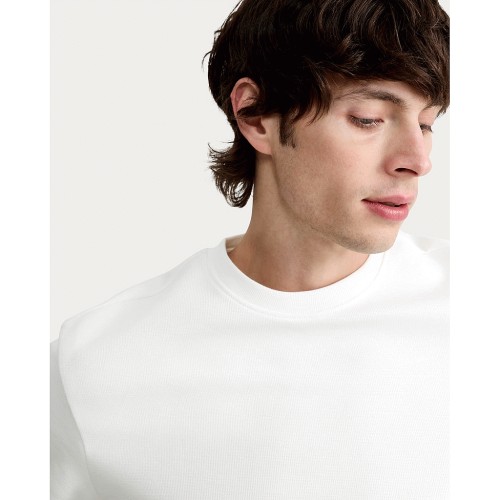 Cotton Rich Textured Crew Neck T-Shirt in Cream