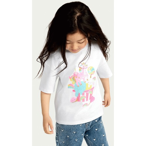 F&F Girls Pure Cotton Unicorn Print T-Shirt in White