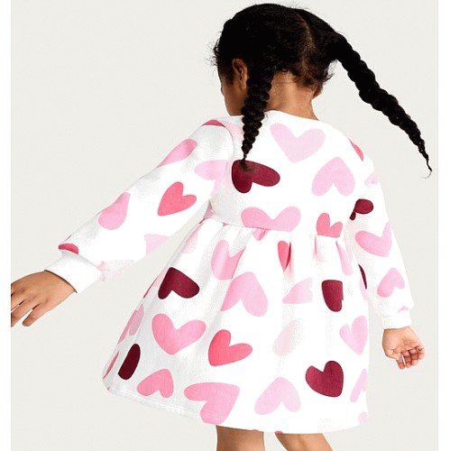 F&F Girls Cotton Rich Heart Print Long Sleeved Sweater Dress in Cream