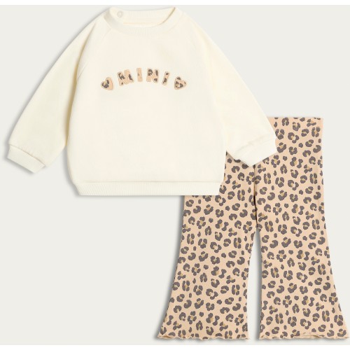 2-Piece Cotton Rich Sweatshirt and Leopard Print Leggings in Cream
