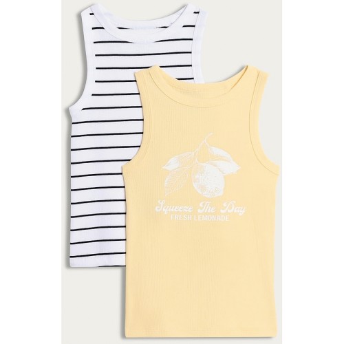 F&F Girls 2-Pack Cotton Rich Vests in Multi Yellow