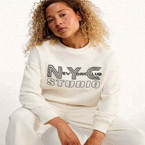 Cotton Rich Downtown NY City Slogan Sweatshirt in Cream