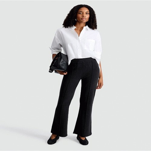 Cotton Blend Ribbed Wide Leg Trousers in Black