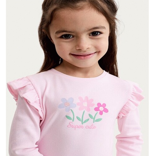 F&F Girls 3-Pack Cotton Rich Ruffle Detail Long Sleeved Tops in Multi Pink