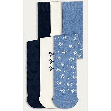 Girls 3-Pack Cotton Rich Supersoft Bow Patterned Tights in Multi