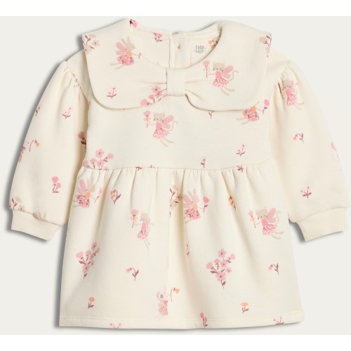 Cotton Rich Fairy Mouse Print Sweat Dress in Cream