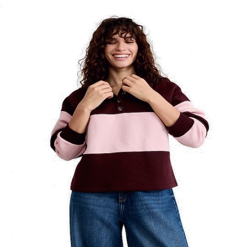 Cotton Rich Stripe Print Collared Rugby Sweatshirt in Multi Pink