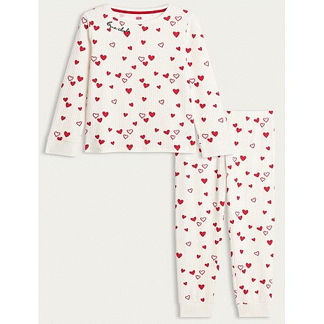 Girls Cotton Rich Heart Print Pyjama Set in Multi