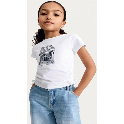 F&F Girls Cotton Rich Ruched Side Graphic T-Shirt in White