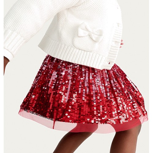 F&F Girls Sequin Embellished Tulle Skirt in Multi Red