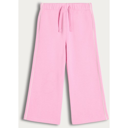 F&F Girls Cotton Rich Contrast Piping Wide Leg Joggers in Pink