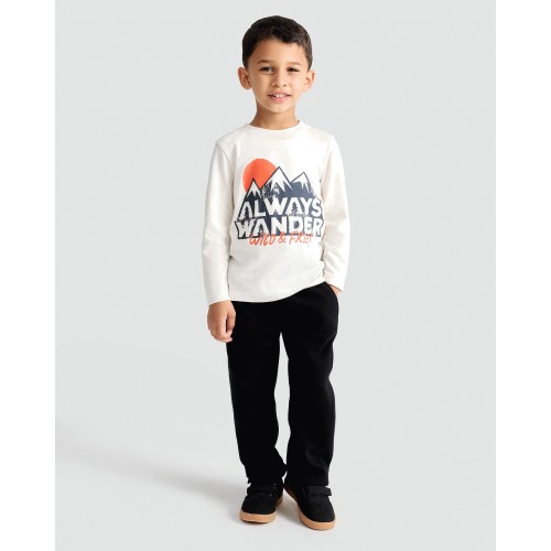 F&F Boys Cotton Rich Wide Leg Drawstring Joggers in Black