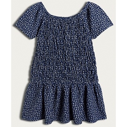 F&F Girls Crinkle Textured Floral Short Sleeved Dress in Multi White