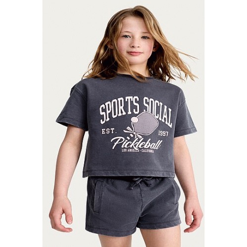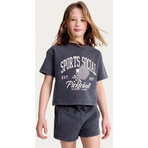 F&F Girls Cropped L.A. T-Shirt in Grey