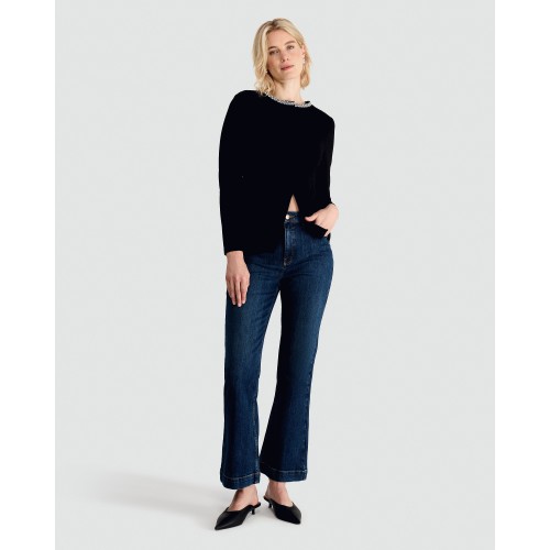 The F&F Edit Ponte Embellished Collar Buttoned Top in Black