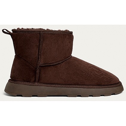Faux Fur Lined Ankle Boot Slippers in Brown