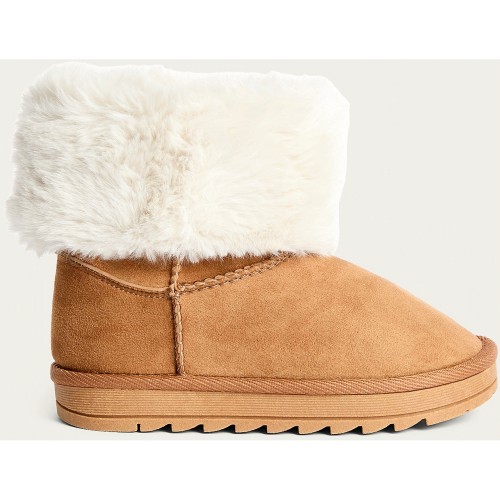 F&F Girls Faux Fur Trim Boot Slippers in Black
