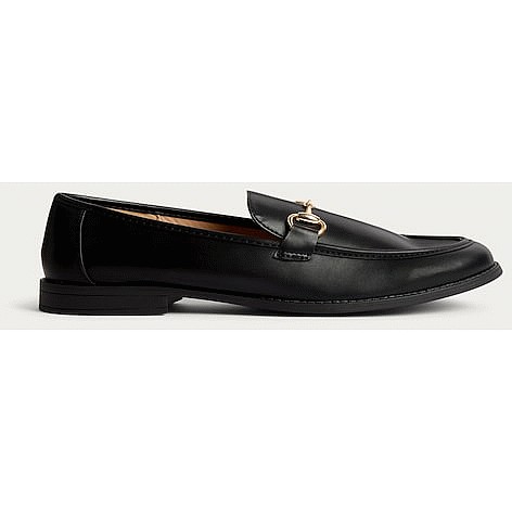 Faux Leather Penny Trim Loafers in Black