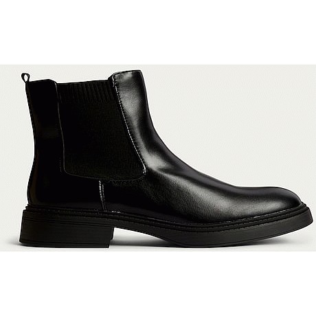 Faux Leather Chelsea Ankle Boots in Black